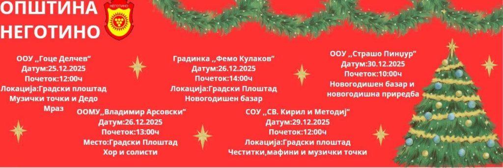 Активностите започнуваат во четврток на 25-ти и ќе се одвиваат до вторник 30-ти декември на градскиот плоштад во Неготино.